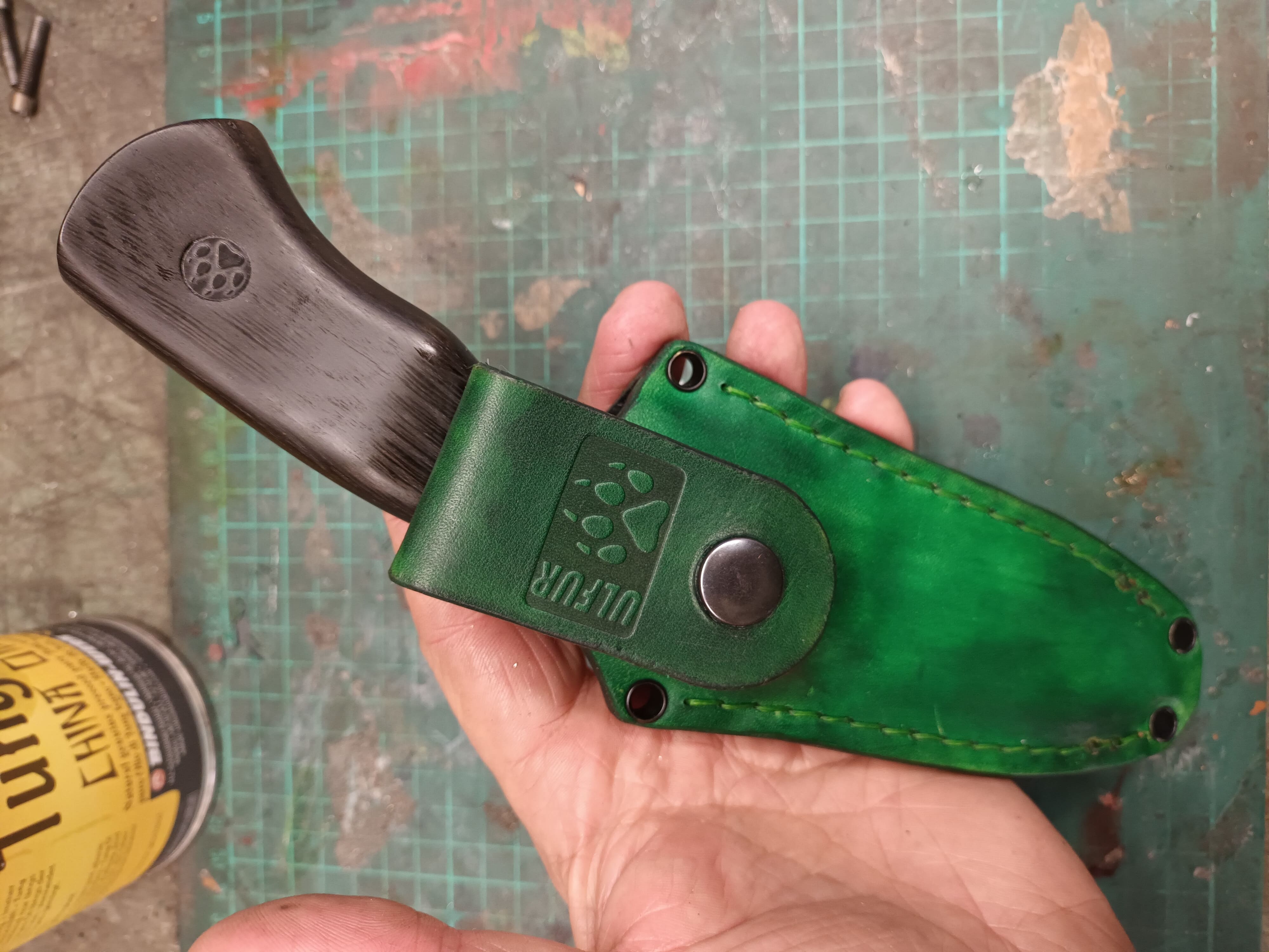 Die Scheiden für meine Outdoormesser bestehen im Kern aus einem Kunststoff (Kydex) und sind ummantelt, vernietet und handgenäht mit Rindsleder.